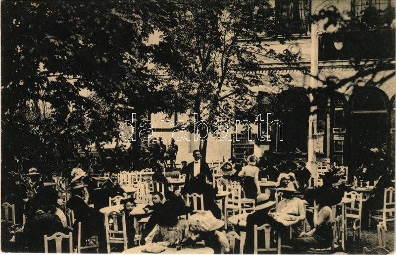 Leírás: Nagyszeben, Hermannstadt, Sibiu; Erlenpark cukrászda kerthelyisége. Czelnai felvétele / Conditorei / confectionery garden