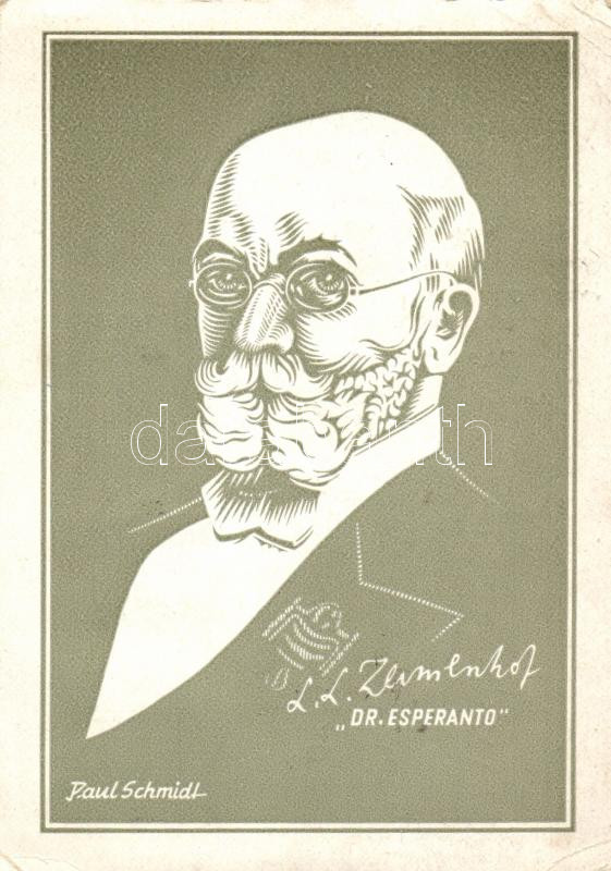 L. L. Zamenhof, 'Dr. Esperanto' Paul Schmidt, So. Stpl (EK) https://www.darabanth.com/hu/488-Gyorsarveres/488.0/Kepeslapok/Eszperanto~2500035/L-L-Zamenhof-Dr-Esperanto-Paul-Schmidt-So-Stpl-EK~II975229