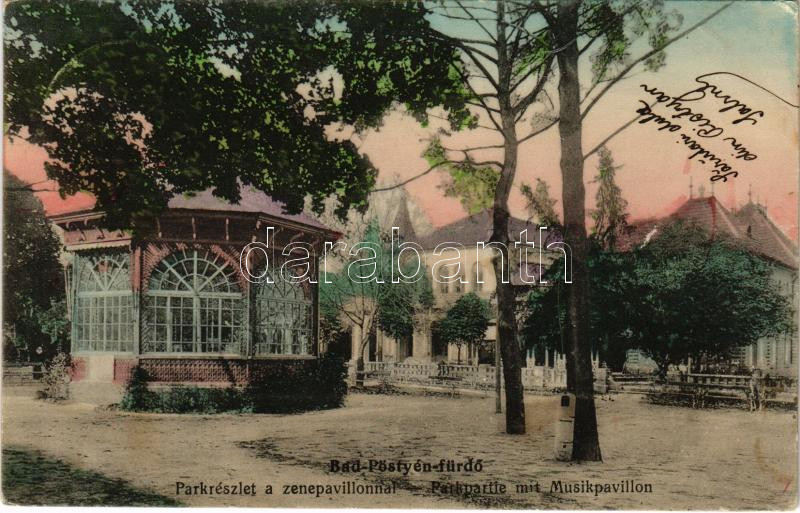 1913 Pöstyén, Piestany; Park, zenepavilon / Parkpartie mit Musikpavill... https://www.darabanth.com/hu/488-Gyorsarveres/488.0/Kepeslapok/Felvidek~2500007/1913-Postyen-Piestany-Park-zenepavilon-Parkpartie-mit-Musikpavillon-park-music-pavilion-E~II3141098