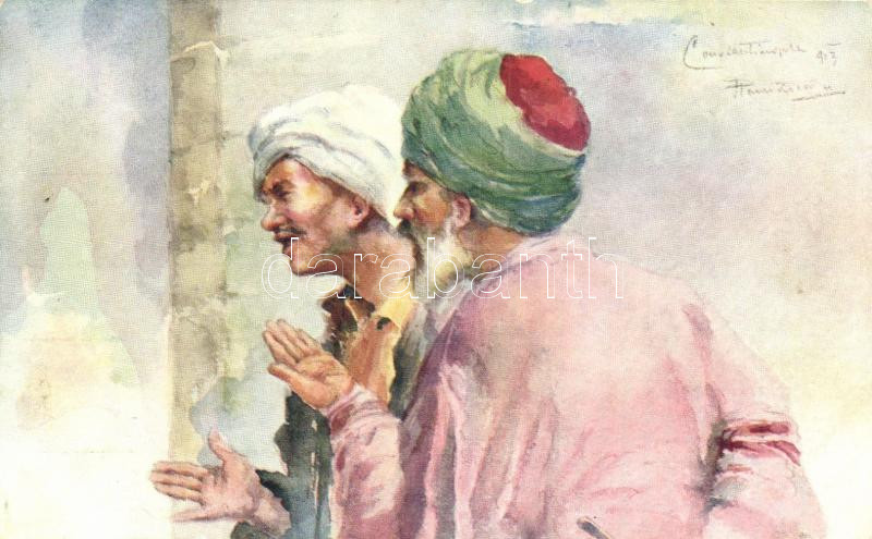 Turkish men, artist signed (fl) https://www.darabanth.com/hu/488-Gyorsarveres/488.0/Kepeslapok/Folklor~2500039/Turkish-men-artist-signed-fl~II1046176