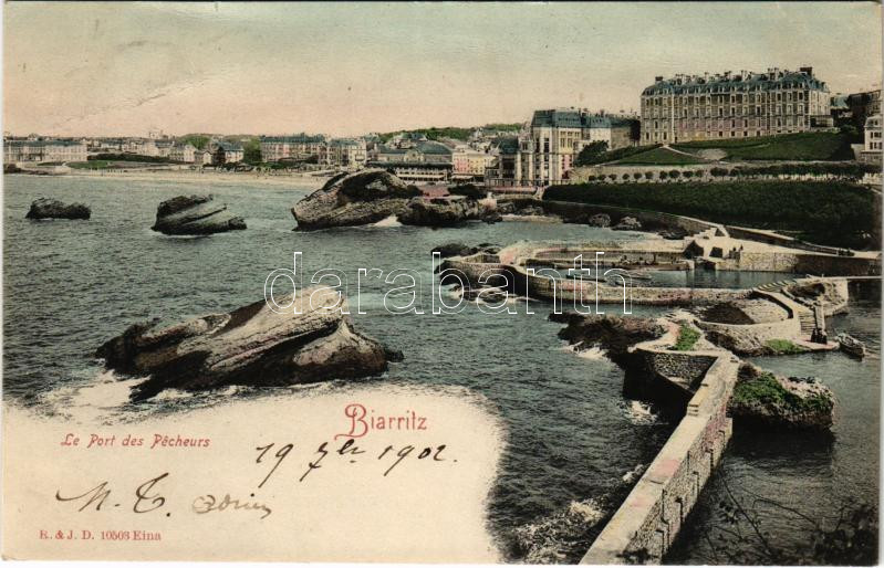 1902 Biarritz, Le Port des Pecheurs (fa) https://www.darabanth.com/hu/488-Gyorsarveres/488.0/Kepeslapok/Franciaorszag~2500038/1902-Biarritz-Le-Port-des-Pecheurs-fa~II3148274