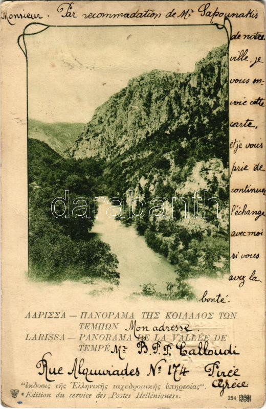 1902 Larissa, Larisa; Panorama de la Vallée de Tempé (fa) https://www.darabanth.com/hu/488-Gyorsarveres/488.0/Kepeslapok/Gorogorszag~2500041/1902-Larissa-Larisa-Panorama-de-la-Vallee-de-Tempe-fa~II3148226