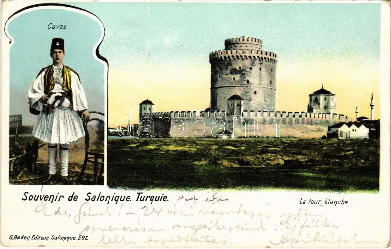 Leírás: Thessaloniki, Saloniki, Salonica, Salonique; La tour Blanche, Cavas / white tower, folklore