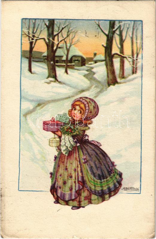 Leírás: 1921 Children art postcard, Christmas. Anna & Gasparini 159-2. s: A. Bertiglia (kis szakadás / small tear)