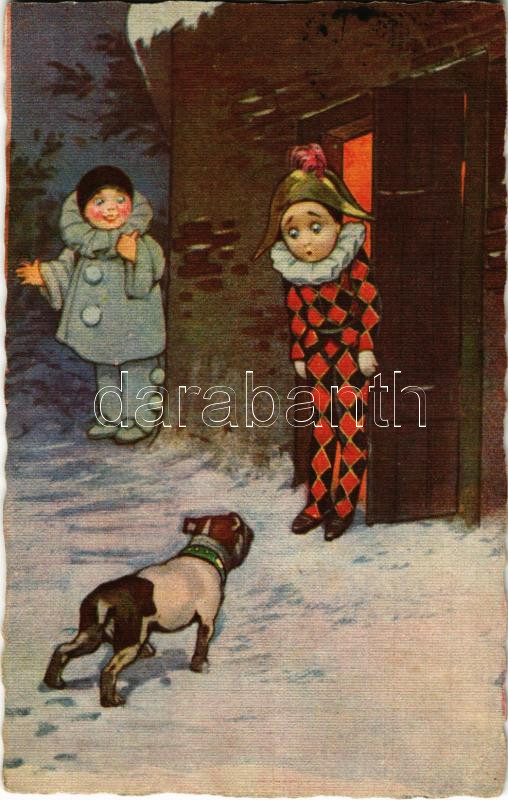 1926 Children art postcard with dog and clown (EK) https://www.darabanth.com/hu/488-Gyorsarveres/488.0/Kepeslapok/Gyerek~2500044/1926-Children-art-postcard-with-dog-and-clown-EK~II3143200