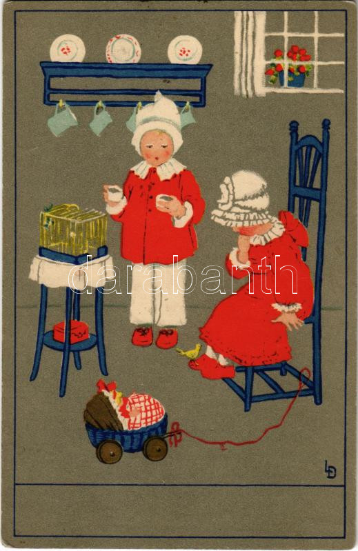 Leírás: Children art postcard with doll. Meissner & Buch Künstler-Postkarten Serie 2300. s: L. D. (EK)