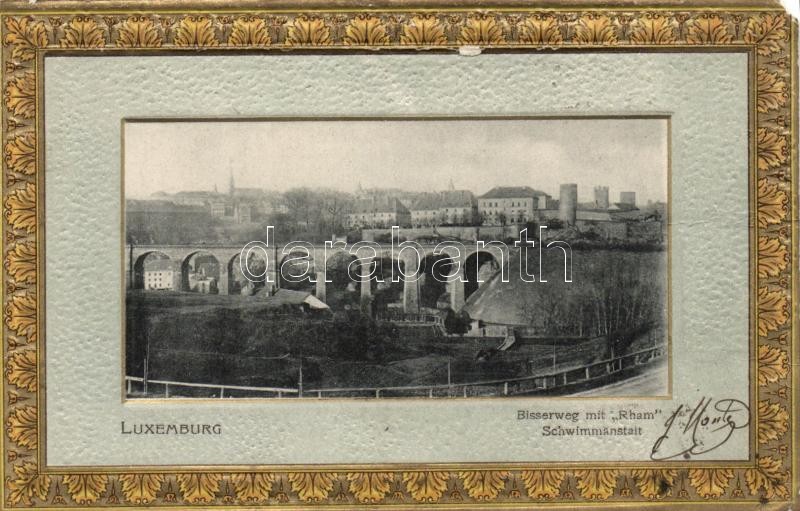 Leírás: Luxembourg, Bisserweg mit Rham Schwimmanstalt / viaduct. Art Nouveau (EM)