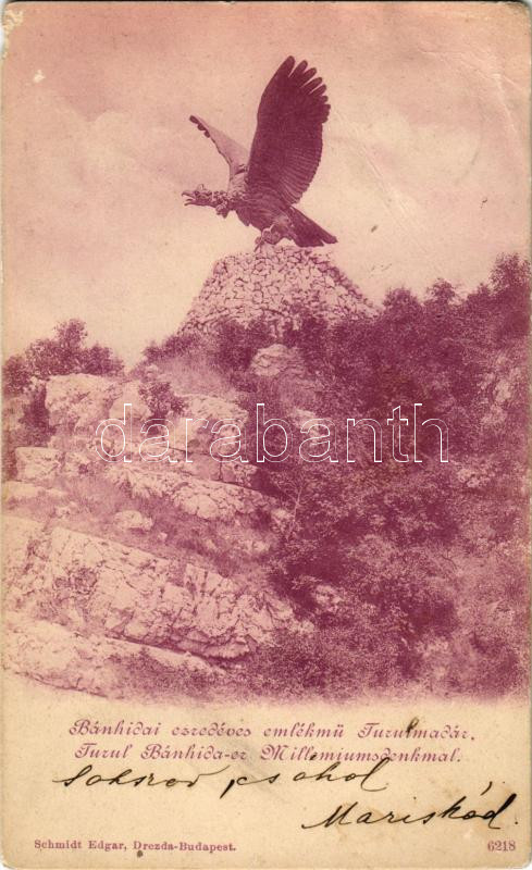 Leírás: 1904 Tatabánya, Bánhidai ezredéves emlékmű, Turulmadár. Schmidt Edgar kiadása (EM)