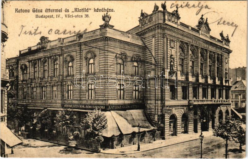 1911 Budapest V. Katona Géza éttermei és Klotild kávéháza, Országos Ti... https://www.darabanth.com/hu/488-Gyorsarveres/488.0/Kepeslapok/Magyarorszag~2500005/1911-Budapest-V-Katona-Geza-ettermei-es-Klotild-kavehaza-Orszagos-Tiszti-Kaszino-Vaci-ut~II3109512