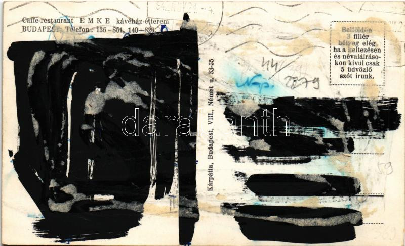 Leírás: 1942 Budapest VII. Emke kávéház és étterem belső (ragasztónyom / gluemark)