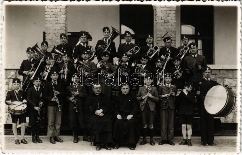 1943 Nyergesújfalu, Szalézi Intézet növendékeinek zenekara. photo (EK) https://www.darabanth.com/hu/488-Gyorsarveres/488.0/Kepeslapok/Magyarorszag~2500005/1943-Nyergesujfalu-Szalezi-Intezet-novendekeinek-zenekara-photo-EK~II2687755