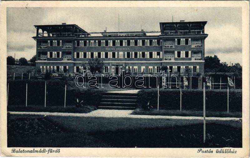 Balatonalmádi-fürdő, Postás üdülőház (EK) https://www.darabanth.com/hu/488-Gyorsarveres/488.0/Kepeslapok/Magyarorszag~2500005/Balatonalmadi-furdo-Postas-udulohaz-EK~II3146728