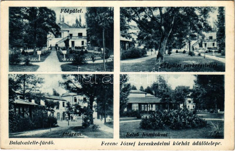 Balatonlelle, Ferenc József kereskedelmi kórház üdülőtelepe, főépület,... https://www.darabanth.com/hu/488-Gyorsarveres/488.0/Kepeslapok/Magyarorszag~2500005/Balatonlelle-Ferenc-Jozsef-kereskedelmi-korhaz-udulotelepe-foepulet-etterem-park-bels~II3147337