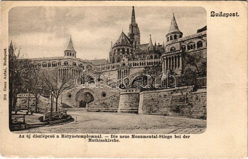 Leírás: Budapest I. Új díszlépcső a Mátyás templomnál. Ganz Antal 200. (felületi sérülés / surface damage)