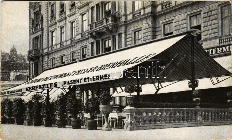 Leírás: Budapest V. Keresztes Ede Pilseni sörcsarnoka és éttermei. Vigadó tér 3. (EK)