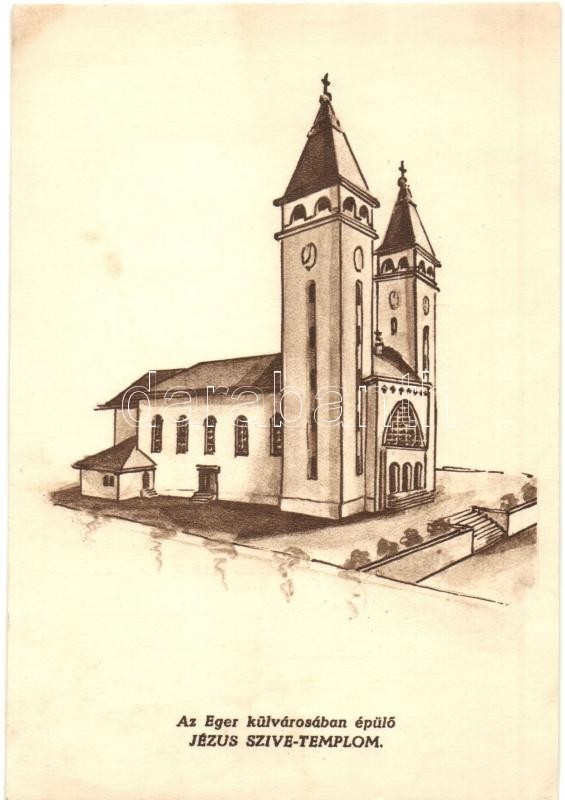 Eger, Külvárosi Jézus Szíve templom (non PC) https://www.darabanth.com/hu/488-Gyorsarveres/488.0/Kepeslapok/Magyarorszag~2500005/Eger-Kulvarosi-Jezus-Szive-templom-non-PC~II1721556