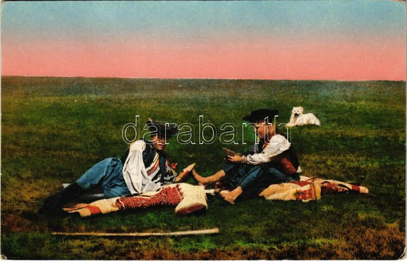 Leírás: Hortobágy, szórakozó gulyások (fl)