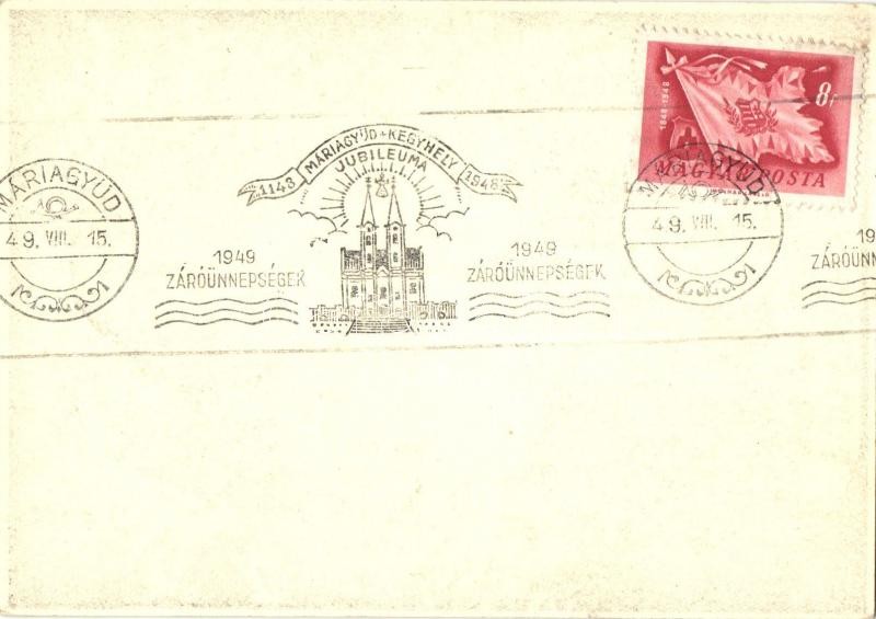 Leírás: Máriagyüd. "1949 Máriagyüd Kegyhely Jubileuma Záróünnepségek" So. Stpl (EK)