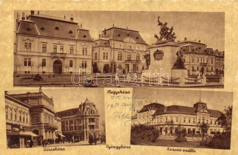Leírás: Nyíregyháza, Megyeháza, Városháza, Korona szálló (EK)
