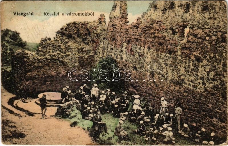 Visegrád, részlet a várromokból, kirándulók. Birkl József kiadása (r) https://www.darabanth.com/hu/488-Gyorsarveres/488.0/Kepeslapok/Magyarorszag~2500005/Visegrad-reszlet-a-varromokbol-kirandulok-Birkl-Jozsef-kiadasa-r~II3146670