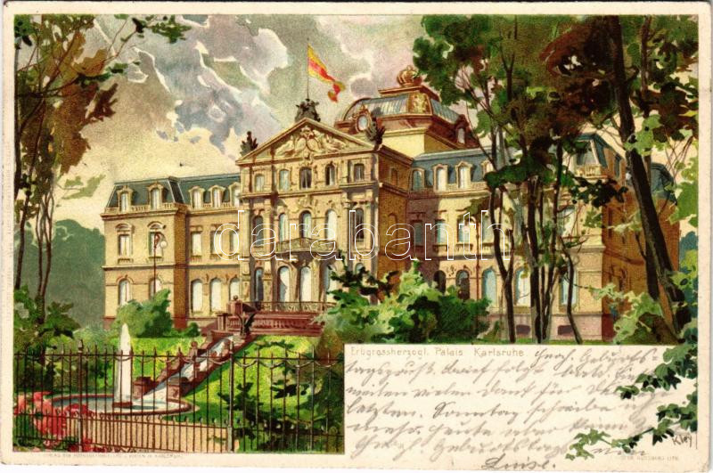 Leírás: 1899 (Vorläufer) Karlsruhe, Erbgrossherzogl. Palais / royal palace. litho s: Kley (fa)