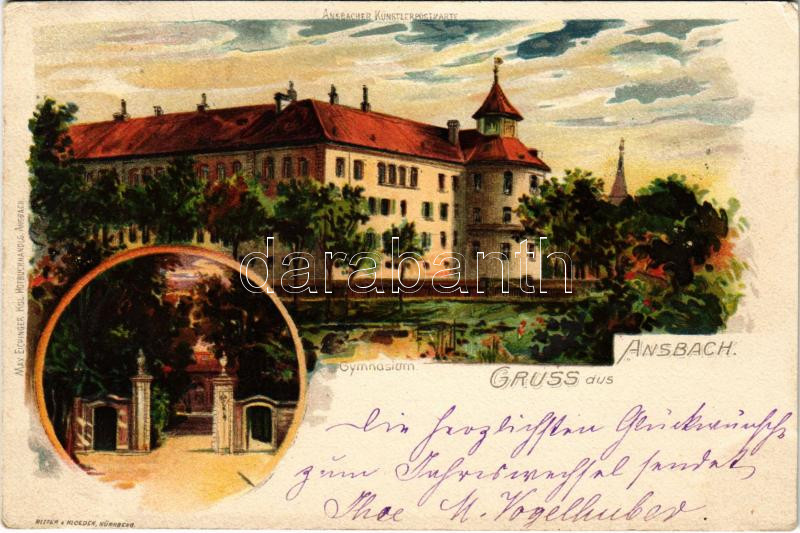 1900 Ansbach, Gymnasium / grammar school. Art Nouveau, litho (EB) https://www.darabanth.com/hu/488-Gyorsarveres/488.0/Kepeslapok/Nemetorszag~2500058/1900-Ansbach-Gymnasium-grammar-school-Art-Nouveau-litho-EB~II3148301