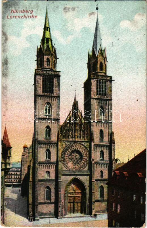 1909 Nürnberg, Lorenzkirche / church (worn corner) https://www.darabanth.com/hu/488-Gyorsarveres/488.0/Kepeslapok/Nemetorszag~2500058/1909-Nurnberg-Lorenzkirche-church-worn-corner3Cbr-3E~II3292356