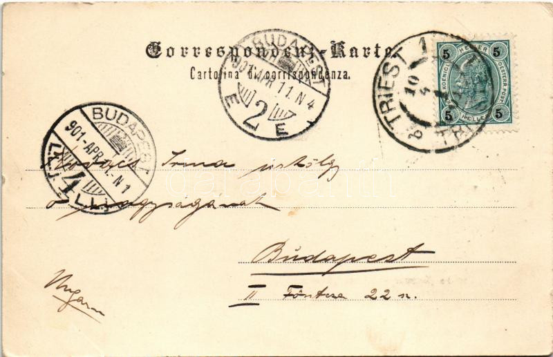 1901 Trieste, Trieszt; Castello Miramar / Schloss / castle (EK) https://www.darabanth.com/hu/488-Gyorsarveres/488.0/Kepeslapok/Olaszorszag~2500064/1901-Trieste-Trieszt-Castello-Miramar-Schloss-castle-EK~II3141879