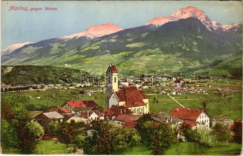 Marlengo, Marling (Südtirol); general view with church (EK) https://www.darabanth.com/hu/488-Gyorsarveres/488.0/Kepeslapok/Olaszorszag~2500064/Marlengo-Marling-Sudtirol-general-view-with-church-EK~II3148336