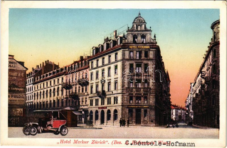 Zürich, Zurich; Hotel Merkur, automobile (EK) https://www.darabanth.com/hu/488-Gyorsarveres/488.0/Kepeslapok/Svajc~2500078/Zurich-Zurich-Hotel-Merkur-automobile-EK~II3148031