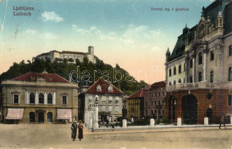 Ljubljana, Laibach; Dvorni trg z gradom / square with castle, Michael ... https://www.darabanth.com/hu/488-Gyorsarveres/488.0/Kepeslapok/Szlovenia~2500085/Ljubljana-Laibach-Dvorni-trg-z-gradom-square-with-castle-Michael-Kaszners-shop-plus-KuK-Zensur~II1742963