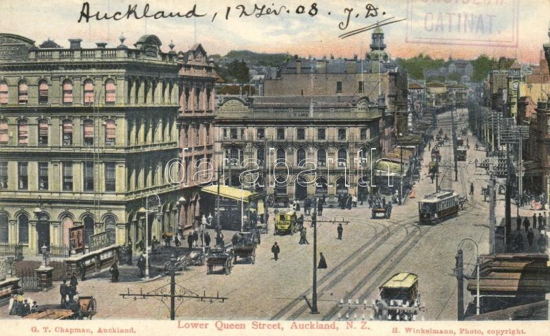 Auckland, Lower Queen Street, tram, automobile, 'Chapman' Se... https://www.darabanth.com/hu/488-Gyorsarveres/488.0/Kepeslapok/Uj-Zeland~2500097/Auckland-Lower-Queen-Street-tram-automobile-Chapman-Series~II978768