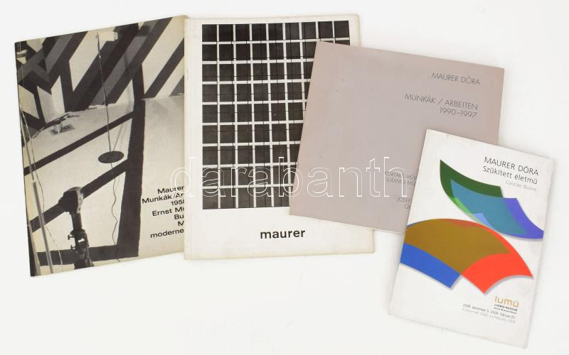 Leírás: 4 db Maurer Dóra kiadvány: Maurer Dóra - Szűkített életmű; Mauer; Maurer Dóra: Munkák / Arbeiten 1958-1983; Maurer Dóra: Munkák / Arbeiten 1990-1997. Kiadói papírkötés, jó állapotban.