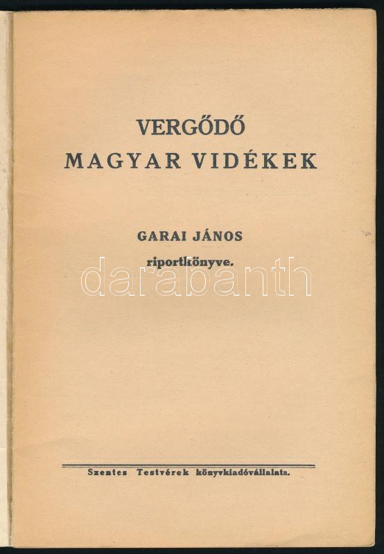 [Tata-Tóváros], [1936], Szentes Testvérek Könyvkiadóvállalata (Szentes Testvérek Könyvnyomdája, Tata-Tóváros), 59 p.