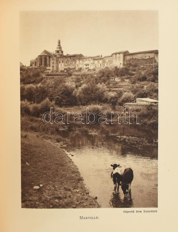Marcel Grosdidier de Matons: En Lorraine de L'Argonne aux Vosgex. Couverture de Clément Kieffer. Ouvrage orné de 194 héliogravures. Grenoble,1932.,B. Arthaud, 1 (térkép) t.+184+4 p. Francia nyelven. Gazdag képanyaggal és egy térképpel illusztrált. Korabeli álbordás félbőr-kötésben, ex libris-szel. sérült gerinccel, egyébként jó állapotban.