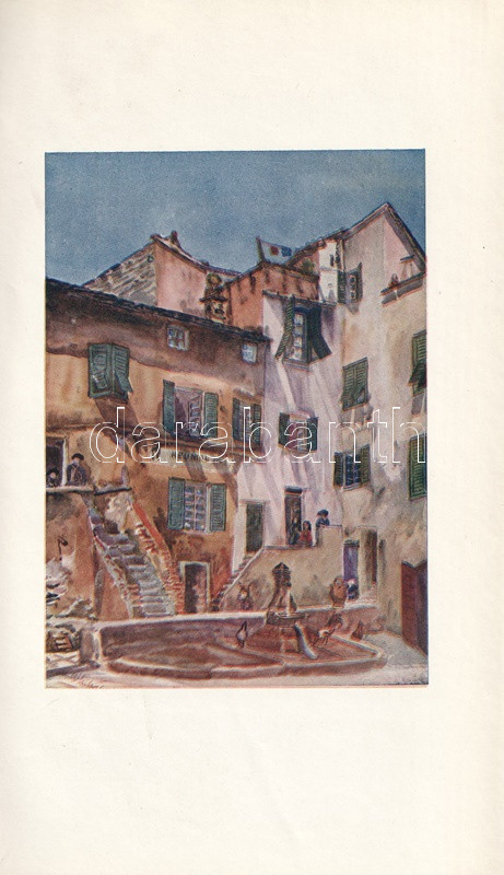 E. R. Whitwell angol festőművésznő a századforduló környékén számos európai utazását örökítette meg akvarellfestményein. Útirajza néprajzi elemekben dúskáló beszámoló a korzikai népéletről, illetve a korabeli turizmus számos aspektusáról. Néhány oldalon enyhe foxing.