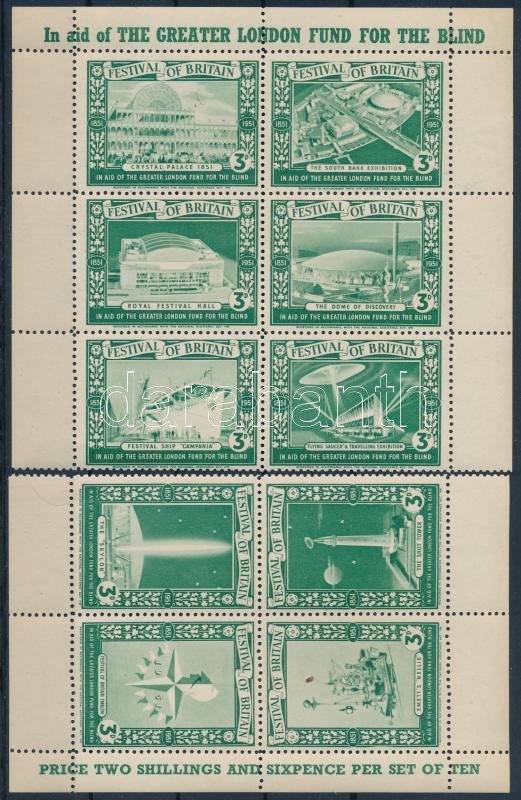 Leírás: Festival of Britain 10 db 3d adománybélyeg a vakok részére 2 összefüggésben