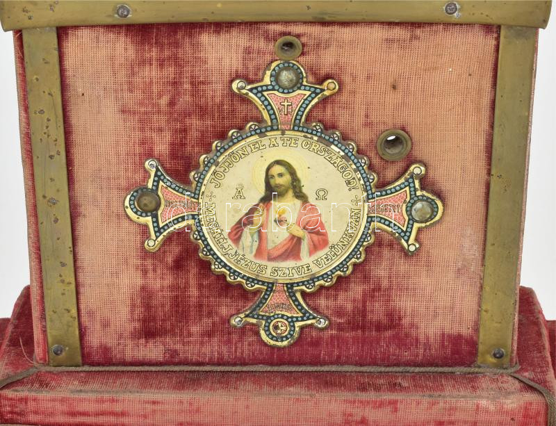 Leírás: Álló házioltár. cca, 20. sz. első harmada, magyar, zeneszerkezettel, hiánnyal, m: 63 cm