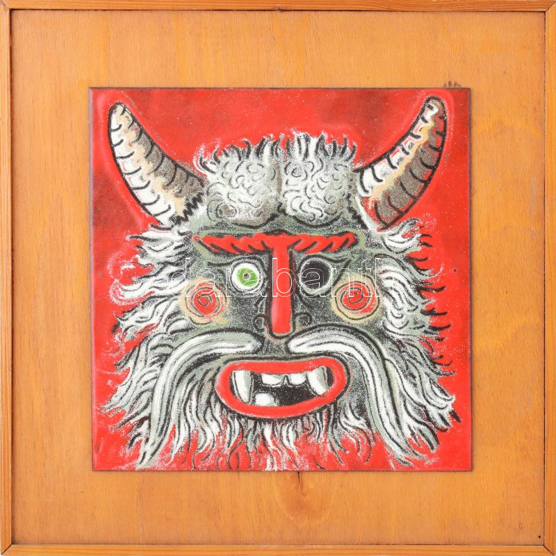 Leírás: Busó. Zománckép fa lapon, jelzés nélkül, 25x25 cm