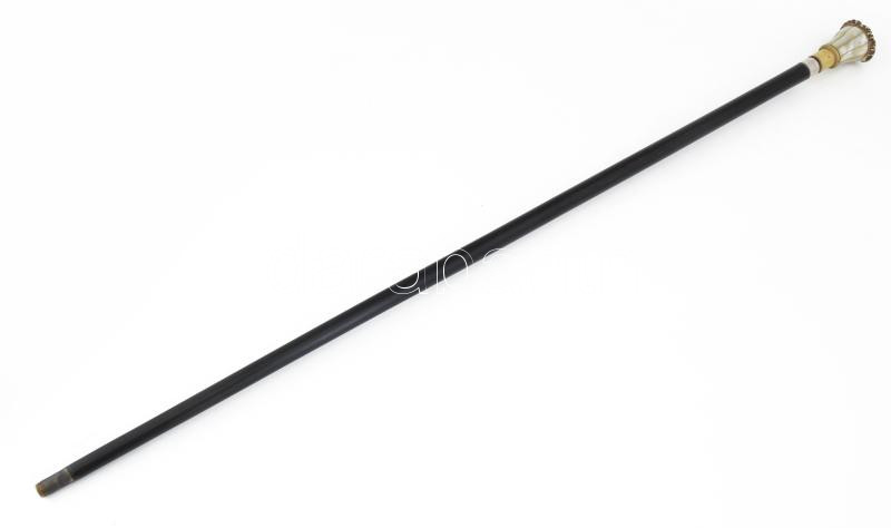 Leírás: Ebonizált fa sétabot, kihúzható tőrrel, markolatán gyöngyház rárakásokkal, h: 94 cm