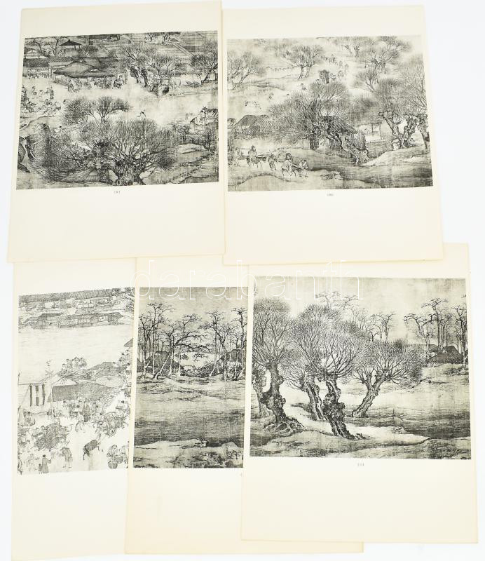 Leírás: 5 db kínai v. japán grafikákról készült fekete-fehér reprodukció, lapméret: 41,5x31 cm