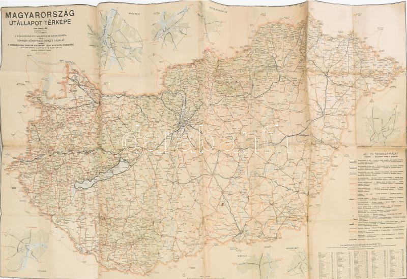 1949 Magyarország útállapot térképe 1949. június 1-én, szerk.: Tallián Ferenc, kiadja: Franklin Könyvkiadó Nemzeti Vállalat. 1 : 500.000. Bp., Magyar Földrajzi Intézet R.T., sérülésekkel, körbevágva, 67x104 cm
