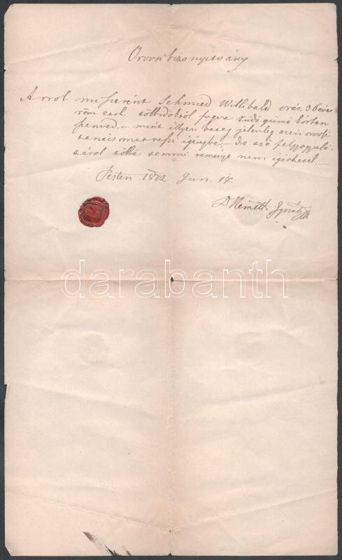 1872 Orvosi bizonyítvány, viaszpecséttel, hajtott https://www.darabanth.com/hu/488-Gyorsarveres/488.0/Mutargy-papirregiseg-egyeb/Tortenelmi-dokumentumok-keziratok-erdekessegek~23/1872-Orvosi-bizonyitvany-viaszpecsettel-hajtott~II3350362