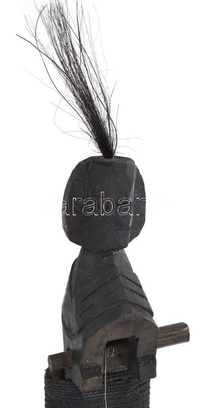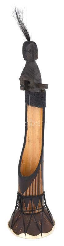 Leírás: Afrikai húros dob hangszer, faragott fej résszel, h: 47 cm