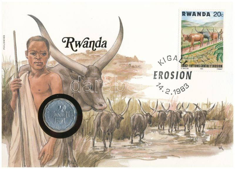 Ruanda 1970. 2Fr felbélyegzett borítékban, bélyegzéssel, német nyelvű leírással T:UNC Rwanda 1970. 2 Francs in envelope with stamp and cancellation, with German description C:UNC