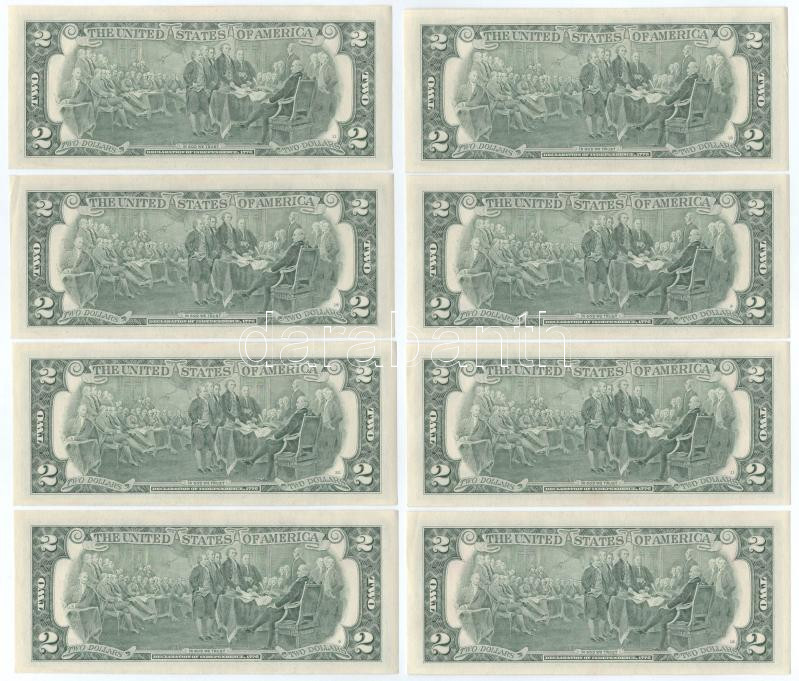 Amerikai Egyesült Államok 2009. 2$ (8x) sorszámkövetők "G11755060... https://www.darabanth.com/hu/488-Gyorsarveres/488.0/Numizmatika/Kulfoldi-bankjegyek~500015/Amerikai-Egyesult-Allamok-2009-2USD-8x-sorszamkovetok-G11755060A-G11755067A-Rosa-Gumatao~II3327504