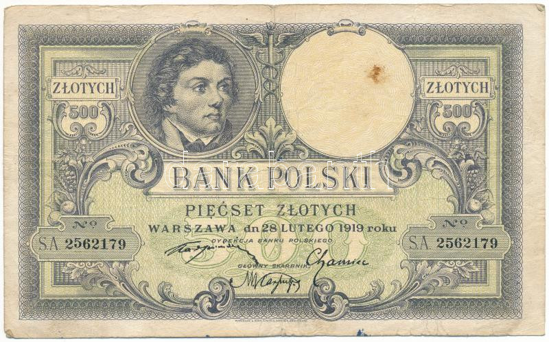Poland 1919. 500 Zlotych "2562179" C:F,VG
