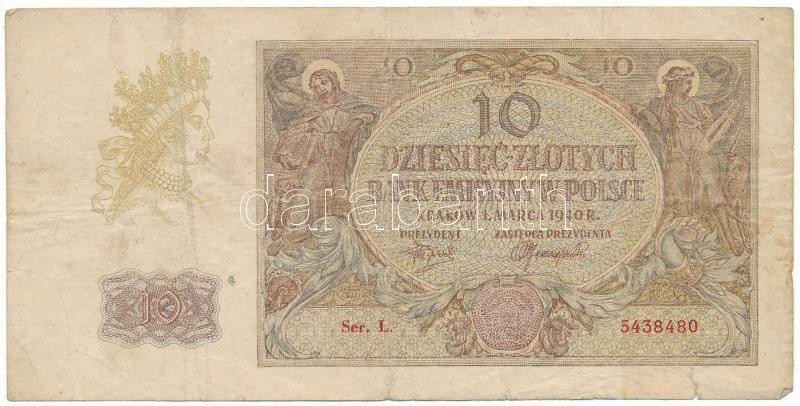 ... https://www.darabanth.com/hu/488-Gyorsarveres/488.0/Numizmatika/Kulfoldi-bankjegyek~500015/Lengyelorszag-Nemet-megszallas-1940-10Zl-L-5438480-TF3Cbr-3E-Poland-German-Occupation-19~II3273837