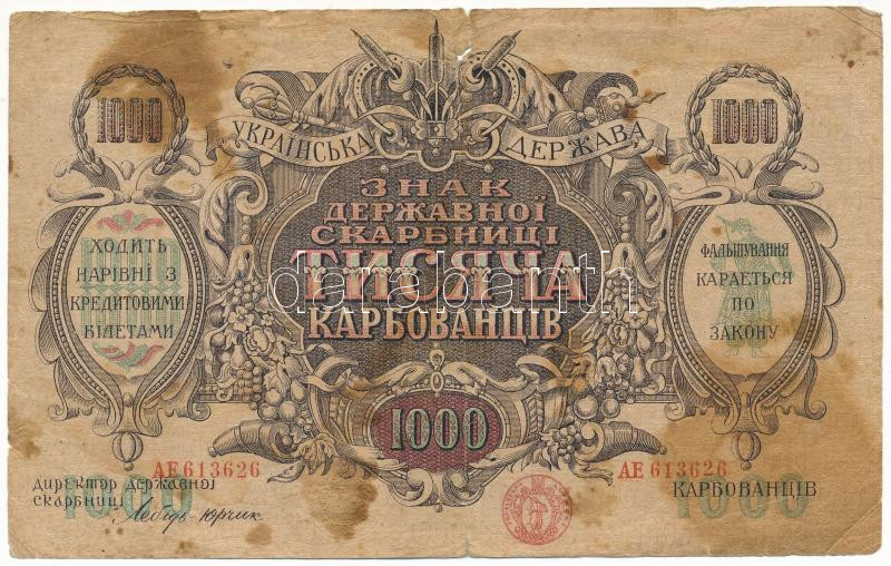 ... https://www.darabanth.com/hu/488-Gyorsarveres/488.0/Numizmatika/Kulfoldi-bankjegyek~500015/Ukrajna-Autonom-Koztarsasag-1918-1000K-AE-613626-TVG3Cbr-3E-Ukraine-Autonomous-Republic-~II3274297