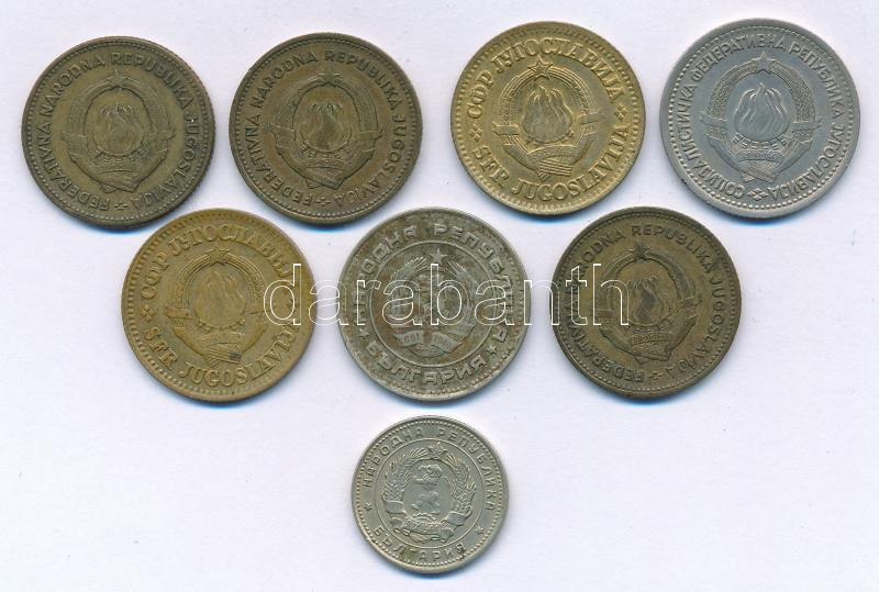 Yugoslavia 1955. 10 Dinara (3x) + 1965. 10 Para (2x) + 1 Dinara + Bulgaria 1962. 10 Stotinki + 1974. 20 Stotinki T:VF, small patina